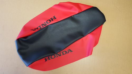 Honda CTX 200 AG seat cover in black/red vinyl with Honda in black on each side.