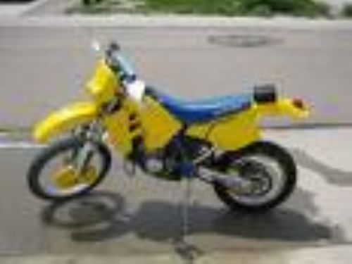 Suzuki RM 250/125 seat cover in UV resistant blue vinyl with Suzuki printed in yellow on each side